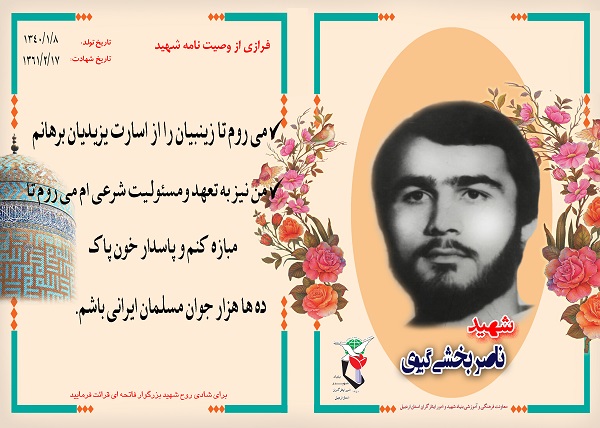 فرازی از وصیت شهید ناصر بخشی گیوی ۱۷ مهر ۱۳۹۸ | ۱۱:۴۹ کد : ۸۵۵۷ اخبار دانشکده ارسال به دیگران نام شما ایمیل شما ایمیل دریافتکننده ارسال انصراف تعداد بازدید:۴۹۴